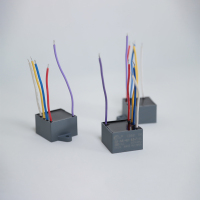 结构Structure ■ 金属化聚丙烯薄膜,隔离膜电容器 Metallized polypropylene film,Segmented film capacitors ■ 阻燃性工程塑料 V-0 Flame retardant engineering plastics V-0 ■ 阻燃性环氧树酯 V-0 Flame retardant epoxy resin V-0 ■ 引出:快速端子,如187#单片或双片、250#单片或双片等 Lead: Fast terminals such as 187# or 250#. 外形示意图和典型线路图Schematic and typical circuit diagrams